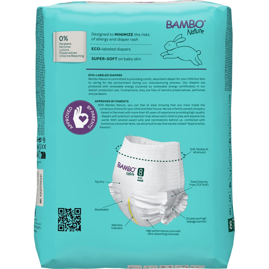 Kalhotkové plenky Bambo Nature jsou pohodlné a udržují v suchu i tu nejcitlivější pokožku. Díky snadnému nasazování i sundávání jsou ideální při tréninku chození na nočník. Plenkové kalhotky perfektně padnou, což umožňuje maximální volnost pohybu vašeho dítěte. Kalhotkové plenky jsou navrženy se speciálním superabsorpčním jádrem včetně nejnovější kanálkové technologie, která odvádí vlhkost od pokožky dítěte a udržuje jej v pohodlí a suchu.