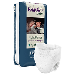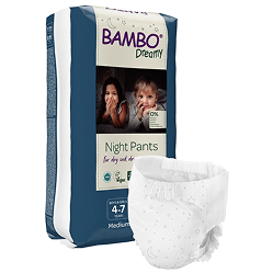 Pro děti trpící nočním pomočováním máme řešení v podobě nočních plen Bambo Dreamy, které jsou určeny pro chlapce i dívky ve věku od 4 do 15 let. Jsou diskrétní, tenké a super savé, takže se vaše děti mohou cítit komfortně a pohodlně po celou noc. Samozřejmostí je nulový obsah barviv a parfemace. Plenky Bambo Dreamy jsou úhradovým produktem, který při diagnóze proplácejí zdravotní pojišťovny! Pro více informací kontaktujte vašeho pediatra.